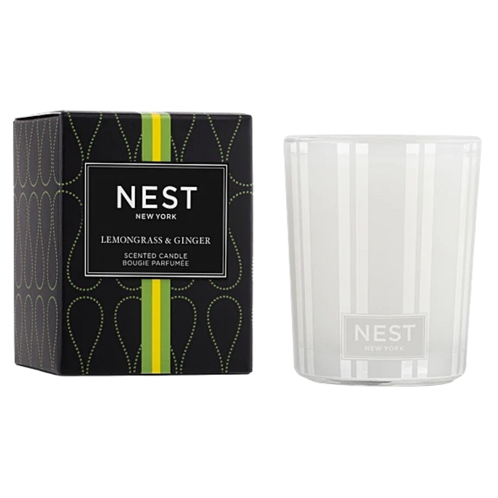 NEST Fragrances Lemongrass & Ginger Votive Candle combines nuances of lemongrass and ginger with an herbal Infusion of lavender, rosemary and thyme.