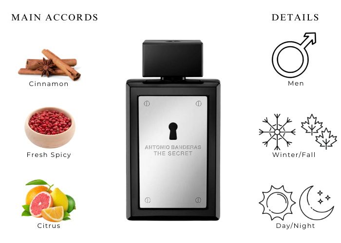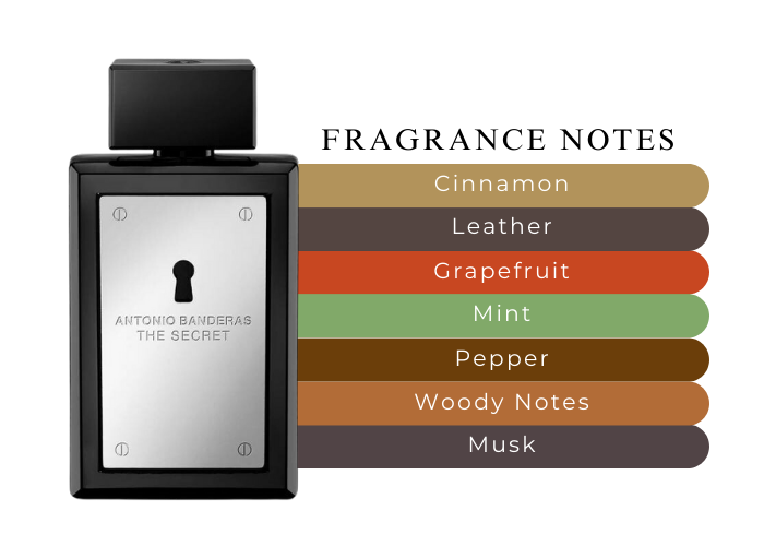 This sensual and masculine fragrance is a blend of Mint, Grapefruit, Cinnamon, Pepper, Apple Liqueur, Tonka Bean, Wood, Musk, and Leather.