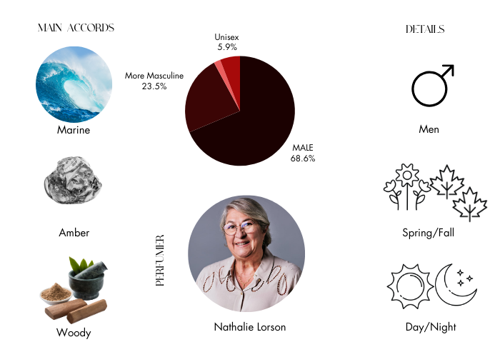 • Top Notes: Aquatic Notes, Bergamot, Clary Sage and Green Violet