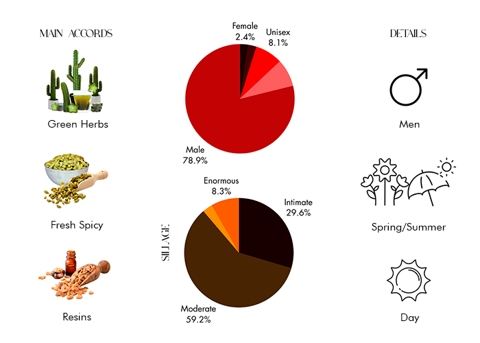 Base notes are Woodsy Notes, Haitian Vetiver and Benzoin.