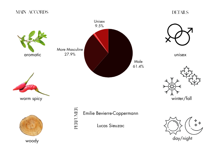 - Base Notes: Tonka Bean, Amber,Kingwood and Leather
