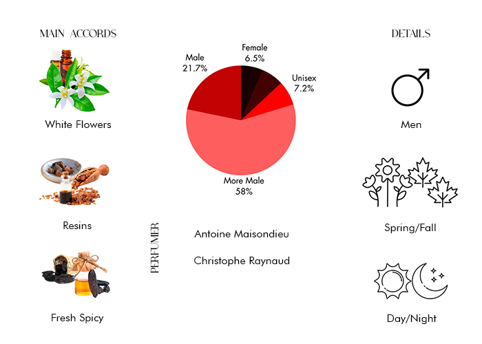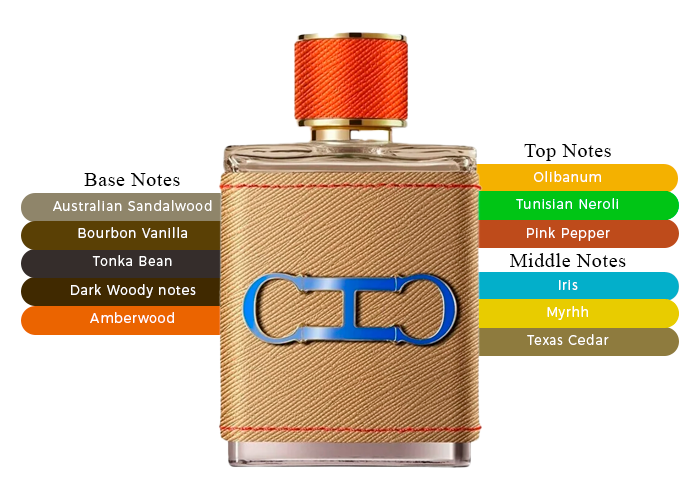 The fragrance begins with a lively and spicy blend of pink pepper and neroli, offering a refreshing and energetic opening. Its heart unfolds with smoky incense and woody cedarwood, exuding mystery and strength. The scent concludes with a warm, seductive base of vanilla and tonka bean, leaving a creamy and irresistible finish.