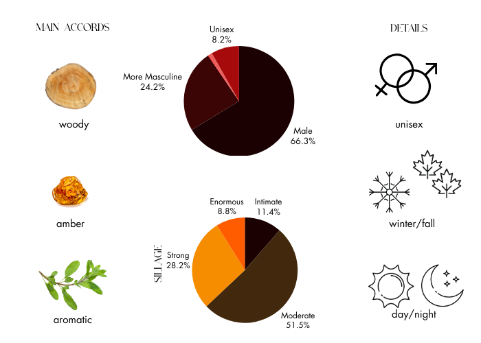 • Base Notes: Sandalwood, Amber, Cedar and Labdanum