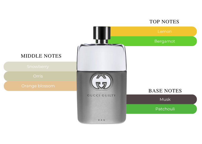 Guilty Pour Homme is carefully designed for men who know what they want and who get what they want. The charismatic alpha male, a true magnet for ladies, is represented in this provocative and seductive composition. The fragrance opens with lavender and lemon, leaving enough space for very appealing scents of orange blossom. Basic tones are supported by warm woody accords of cedar and patchouli, offering a firm but exciting and soft coloring to the whole composition. The bottle is crafted of cold metal and heavy glass, making an impression of masculinity and luxury, cabochon grey male bottle seems very elegant and alluring. The middle of the bottle is decorated with a metallic Gucci sign, transparent to reveal the fragrant fluid.