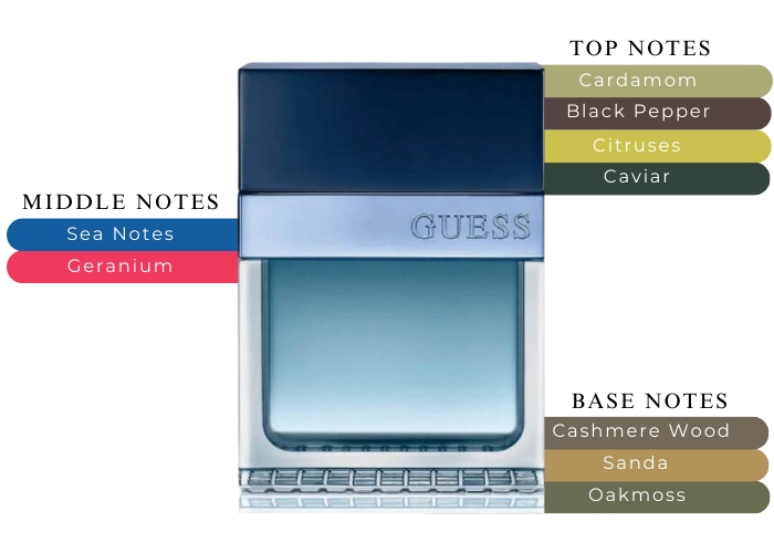 The marine notes of this fragrance are really fresh, like a day at the beach. Cool and invigorating as an ocean breeze and unforgettably sensual as a sunset beach encounter, Guess Seductive Homme Blue takes its olfactory cues from both the intensity of the blue ocean and the earthy warmth of sand-bound seduction.