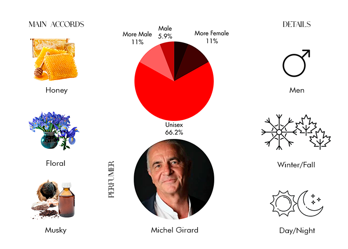 This unique fragrance opens with the warm richness of beeswax and fresh clary sage. The fragrance evolves into a heart of delicate iris and sweet tonka bean, creating a fresh yet sensual blend. Musk and sandalwood in the base provide a creamy, velvety finish that lingers with a subtle, enduring presence.