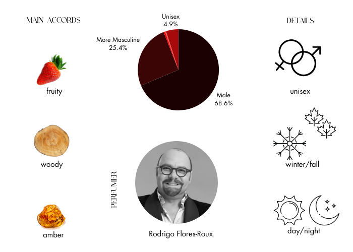 - Base Notes: Balsam, Black Leather, Amber, Vanilla and Oud