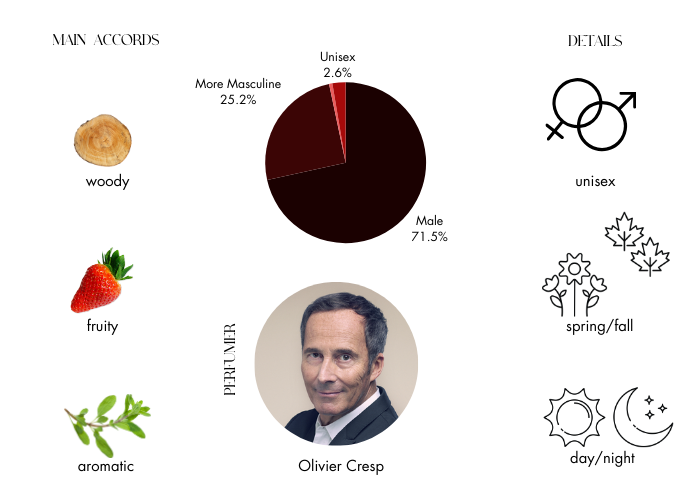 "Zesty aromas of bergamot and pepper in the opening - pass into an aromatic heart of lavender and tonic bean - based on amber and musk."
