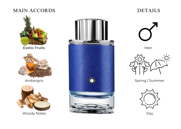Inspired by the blue of the sky, seas, and ice-covered mountains, Explorer Ultra Blue Eau de Parfum embraces the explorer's adventurous spirit to embark on an epic olfactory journey. The fragrance is a citrus marine woody scent with luminous top notes of zesty Italian bergamot and citrus of the finest quality. Marine accord is the beating heart of the fragrance, and earthy base notes of patchouli are combined with refined woods with leathery facets. Signature of excellence in design and quality, the bottle¿s thick glass base reveals the iconic Montblanc star, representing the six glacial slopes, creating the snowy peak of the mountain. Assembled by hand in the Maison's Pelleteria in Florence, the leather-like protective sheath is printed with the elegant Ultra Blue Saffiano motif and decorated with the Montblanc emblem, which is crafted in Montblanc's Hamburg manufactory.
