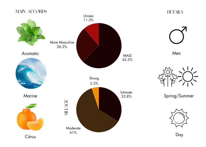 - Mint, Mandarin Orange, Sea Notes, Sage, Woodsy Notes, and Iris