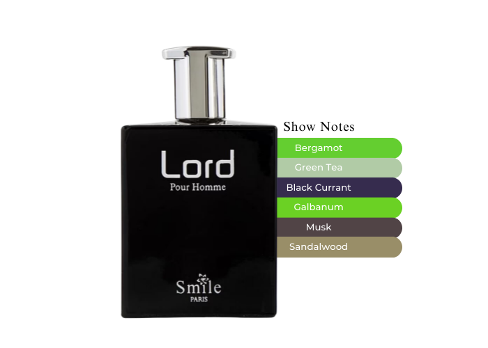 Buy this Lord Eau De Parfum and feel like a king. Fragrance notes in this Smile Paris cologne for men are Bergamot, green tea, black currant, galbanum, musk, sandal wood. Buy this Lord perfume for less at MaxAroma today!