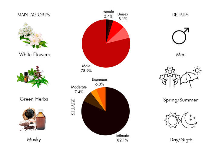 Fragrance notes are White flowers, jasmine, musk, patchouli.