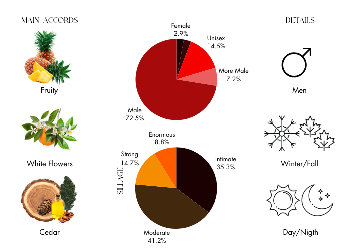 • Base Notes: Musk, Vanilla, Tonka Bean and Cedarwood