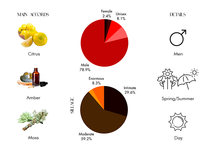 - Base Notes: Oakmoss, Musk and Patchouli