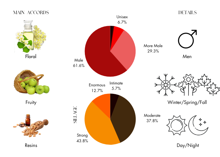 • Base Notes are Benzoin Resinoid, patchouli and vanilla.
