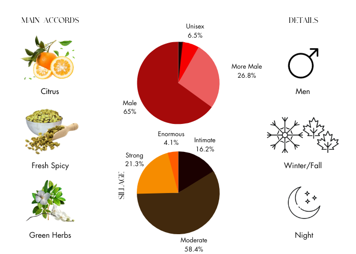 Fragrance notes are Bitter Orange, Neroli, Black Pepper, Cardamon, Saffron,Oud Wood, Patchouli, & Leatherwood .