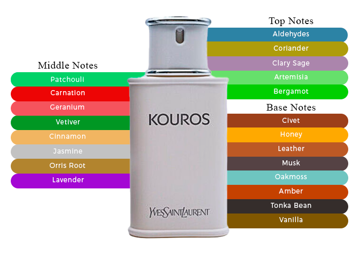 - Base Notes: Civet, Musk, Oakmoss, Amber, Frankincense, Honey, Leather, Tonka Bean and Vanilla