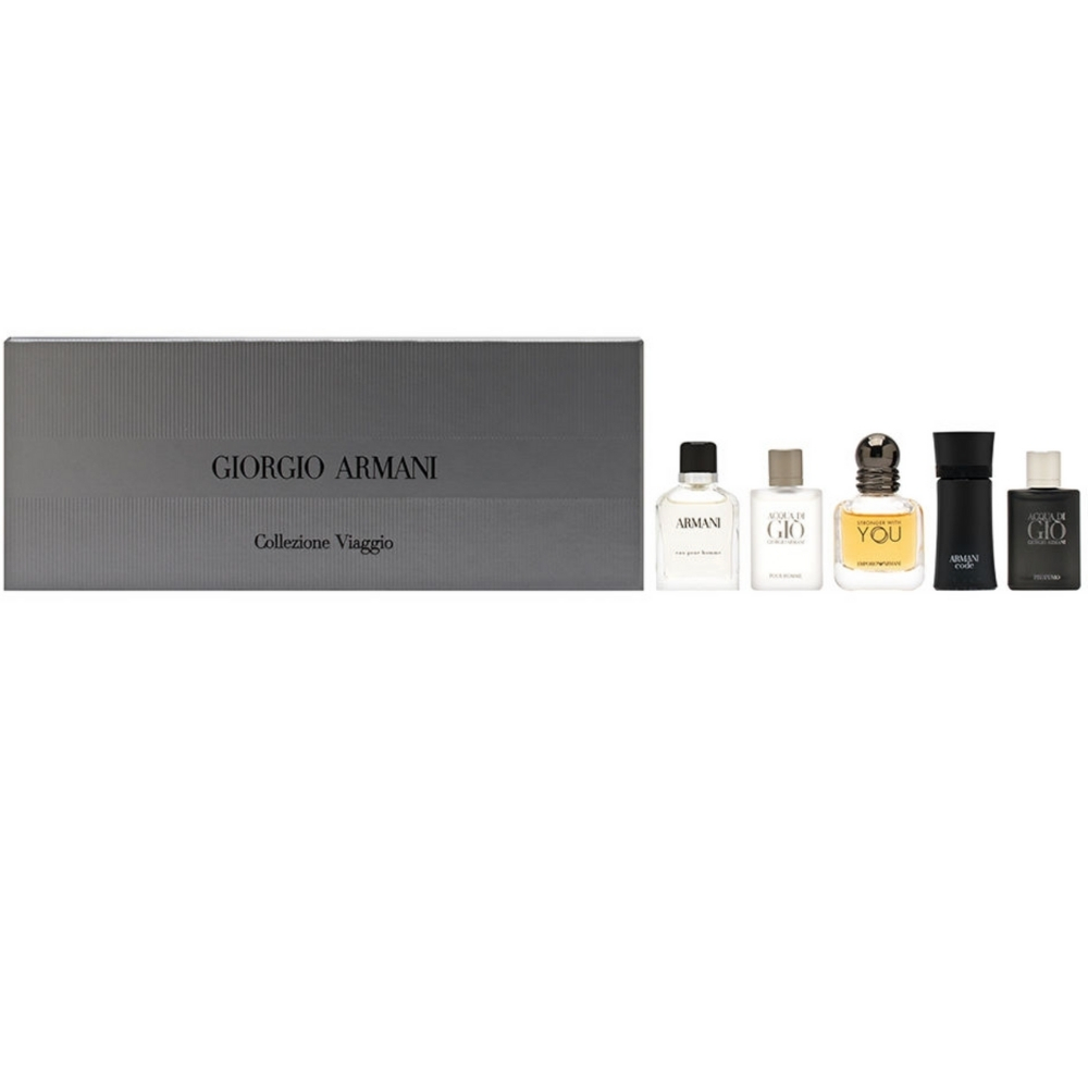 This set includes an Armani Code, Acqua di Gio, Armani Gio Profumo Eau de Parfum and Armani Eau pour Homme, Emporio Armani Stronger With You Eau de Toilette Splash 5 ml 0.17 oz. Brand new in Gift Box.