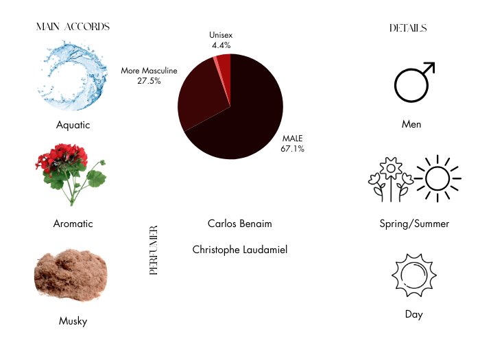 Immerse yourself in the invigorating blend of top notes, where the crispness of melon and cucumber awaken your senses and transport you to a realm of ultimate freshness. As the scent develops, a heart of clary sage and basil unfolds, adding a touch of aromatic allure that captivates those around you.