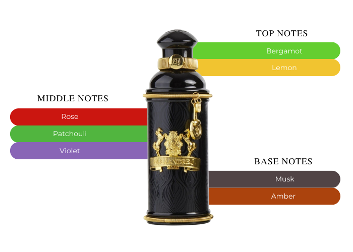 Mix between the Amber desert and the French baroque architecture, this collection of 6 fragrances evokes a timeless journey, the warmth of elements and the change of scenery. It focuses on a magical place talking to everyone’s imagination. Black Muscs embodies chic amber, allied with fruity, floral notes. An absolute reflection of mysterious personality. Black Muscs by Alexandre.J is a Woody Floral Musk fragrance for women and men. Black Muscs was launched in 2012. Top notes are bergamot and lemon; middle notes are violet, rose and patchouli; base notes are amber and musk.