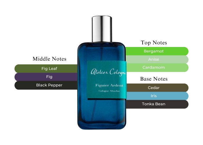 Fragarance notes are Calabrian Bergamot, Anise, Cardamom, Fig Leaf, Salty Fig, Pepper, Virginian Cedarwood, Tuscan Iris, and Tonka Bean.