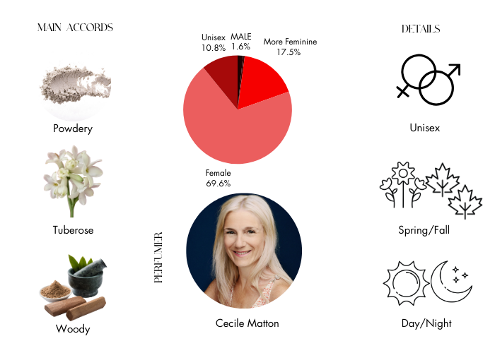 Tubereuse Imperiale is a sweet, rich, and slightly spicy scent for women and men created by Cecile Matton, who released it in 2016 as part of her Collection Matieres.