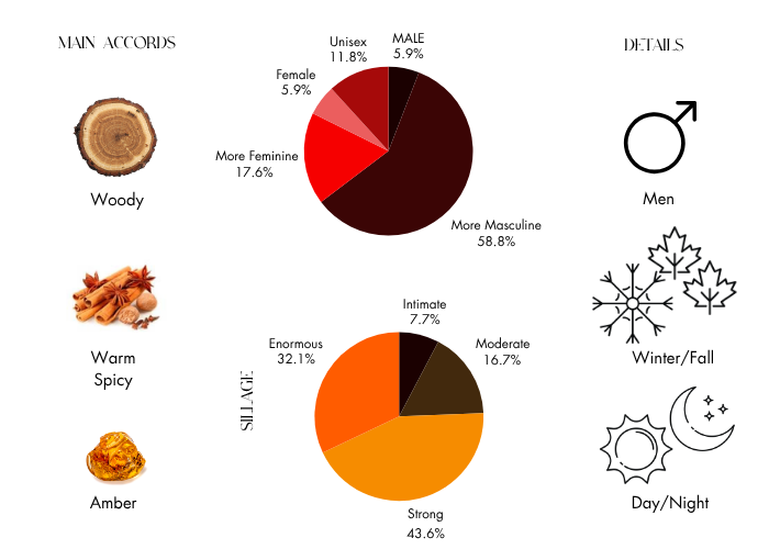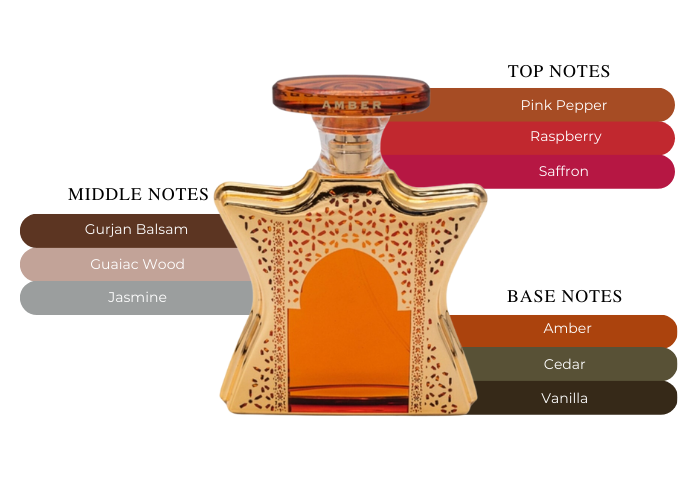 Notes: Bergamot, saffron, pink pepper, raspberry, bulgarian rose, jasmin, gurjum, guaiac wood, incense, oud, amber, cedarwood, vanilla, civet