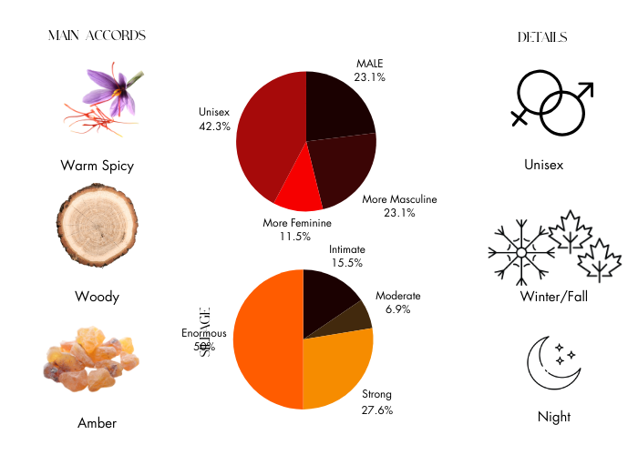 Notes: Neroli, Saffron, Beeswax, Turkish Rose, Gurjun, Cedarwood, Pepper, Oud, Sandalwood, Tolu Balm, Benzoin Siam, Vetiver