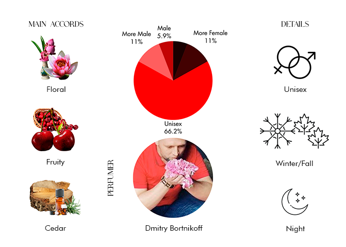 - Middle Notes: Sour Cherry, Vanilla Indonesia and Guaiac Wood