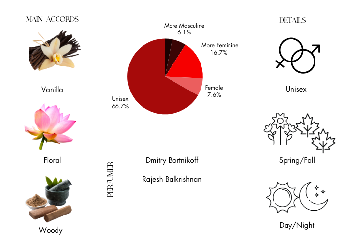 Santa Sangre Bortnikoff is a woody-citrusy fragrance that was released in 2021. This fragrance features notes of pink grapefruit, vanilla, jasmine sambac, pink lotus, white lotus, sandalwood and incense.