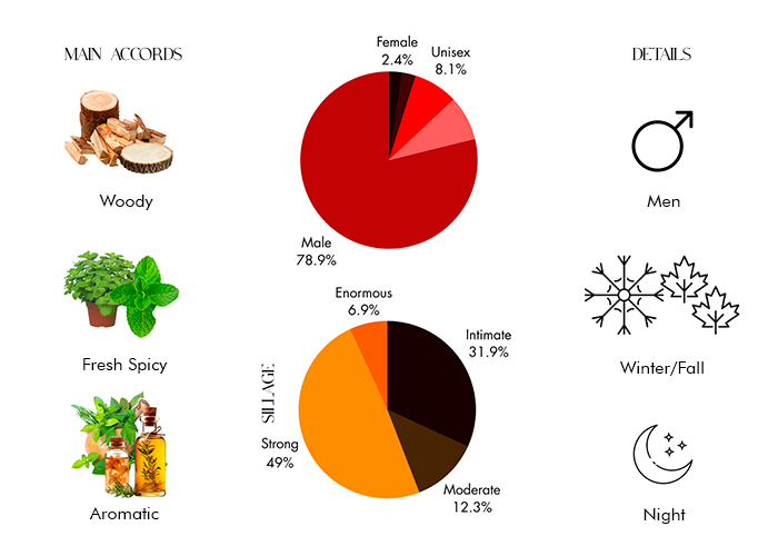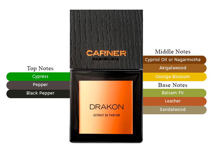 - Base notes are Balsam Fir, Leather and Sandalwood.