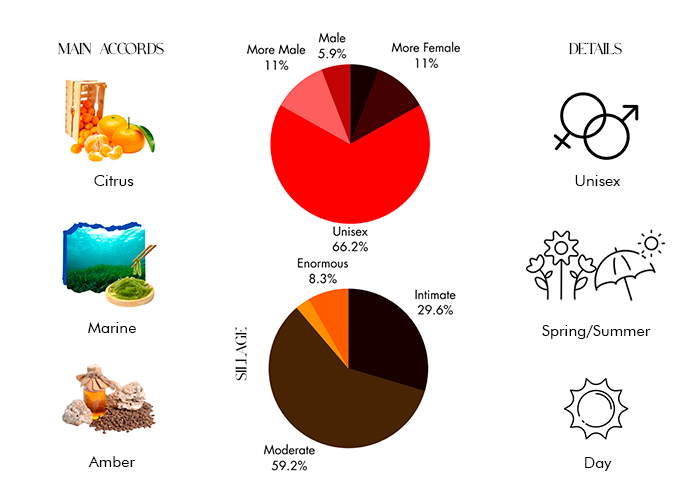 • Top Notes: Bergamot Leaf, Mandarin Orange Leaf and Laminaria