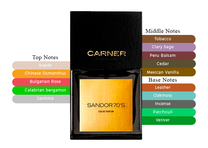 "We will tranport you to one of the most iconic bars of the 70’s in Barcelona with Sandor 70’s — a leathery tobacco perfume. At the crest of upper Barcelona once a place to see and be seen, an iconic bar where the smoke of cigars flirted with the aristocratic leather armchairs..."