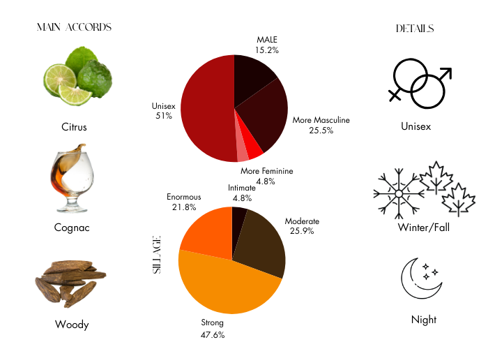 - Base Notes: Ambergris, Cedarwood, Vanilla Bourbon and Oud.