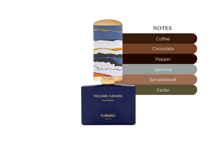 Volcanic Flowers combines notes of Jasmine absolute, Lily of the Valley, Patchouli oil and a chocolate-coffee accord meld to create a delectable depth and leave a vibrant and woody signature on the skin. ------------------------------------------ VOLCANIC FLOWERS BLOSSOMING AT NIGHT ------------------------------------------- Other notes: Bergamot Oil, Madagascar Ginger Oil, Olibanum, Pepper, Coffee Accord, Cardamom Oil, Cedarwood Oil, Clove, Gingerbread, Lavender Absolute, Nutmeg Oil, Amber, Sandalwood, Leather, Chocolate Content: bottle 50mL/1.6oz + Purse Spray + travel vial 10mL/0.3oz + cap