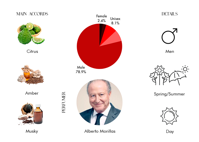 • Top Notes: Ambroxan, Bergamot and Orris Root