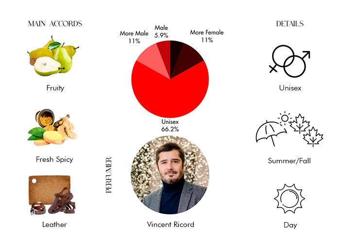 - Middle Notes: Frankincense, Blackcurrant, Ginger, Pear, Carrot, Iris and Cyclamen