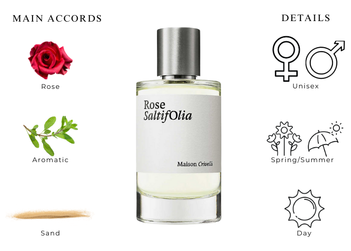 Rose Saltifolia Maison Crivelli is a beautiful blend of rose and aquatic aromas. Rose Saltifolia is a light and airy perfume that will leave you feeling as though you're strolling through fields of flowers with the wind in your hair. If you want something floral but not too feminine, or if you enjoy wearing a more neutral scent that still smells wonderful, you'll love Rose Saltifolia by Maison Crivelli. This fragrance is perfect for anybody who wants to feel fresh and clean when they wear their perfume.