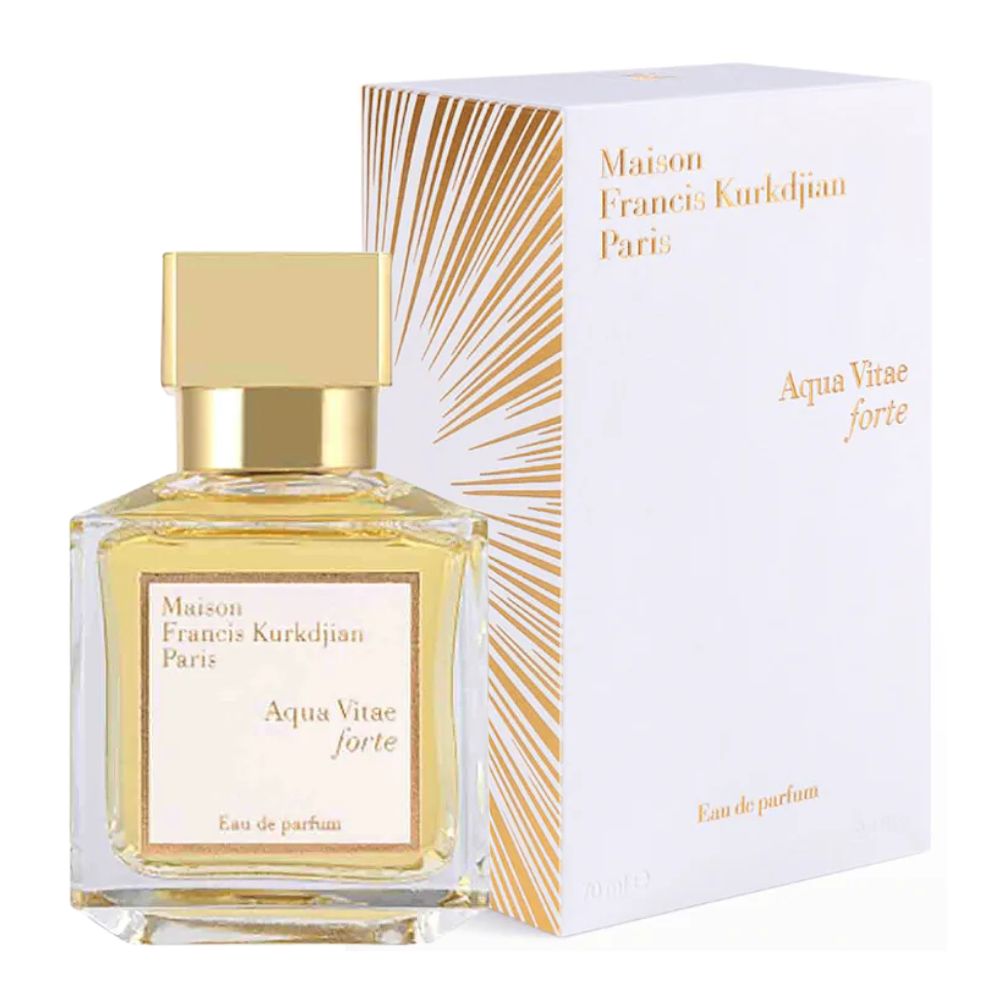 Luscious, rich and full of oriental spice, this Aqua Vitae forte Maison Francis Kurkdjian eau de parfum brings a  floral scent That creates an invisible bond between fresh nights to come and the warmth of days past. Your Main Accords are Citrus, Warm Spicy, Woody, Aromatic, Yellow Floral, Sweet, White Floral.