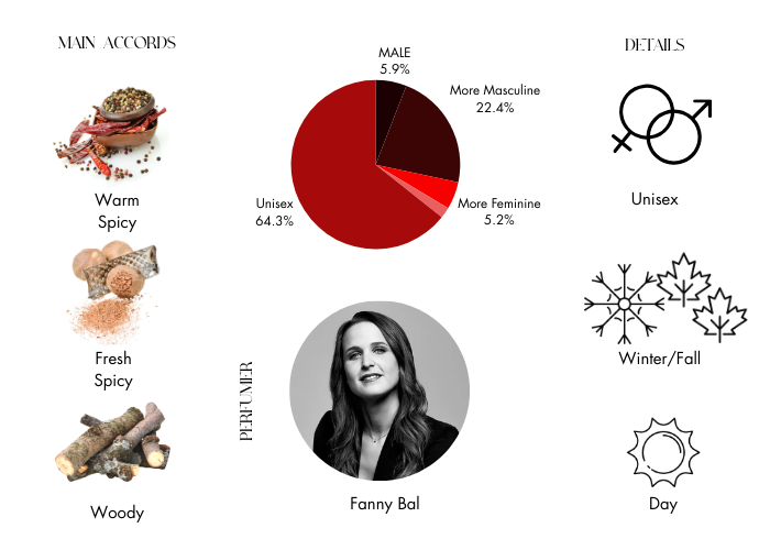 - Base Notes: Cedarwood heart Essence, Moss Accord and Fir Balsam Absolute