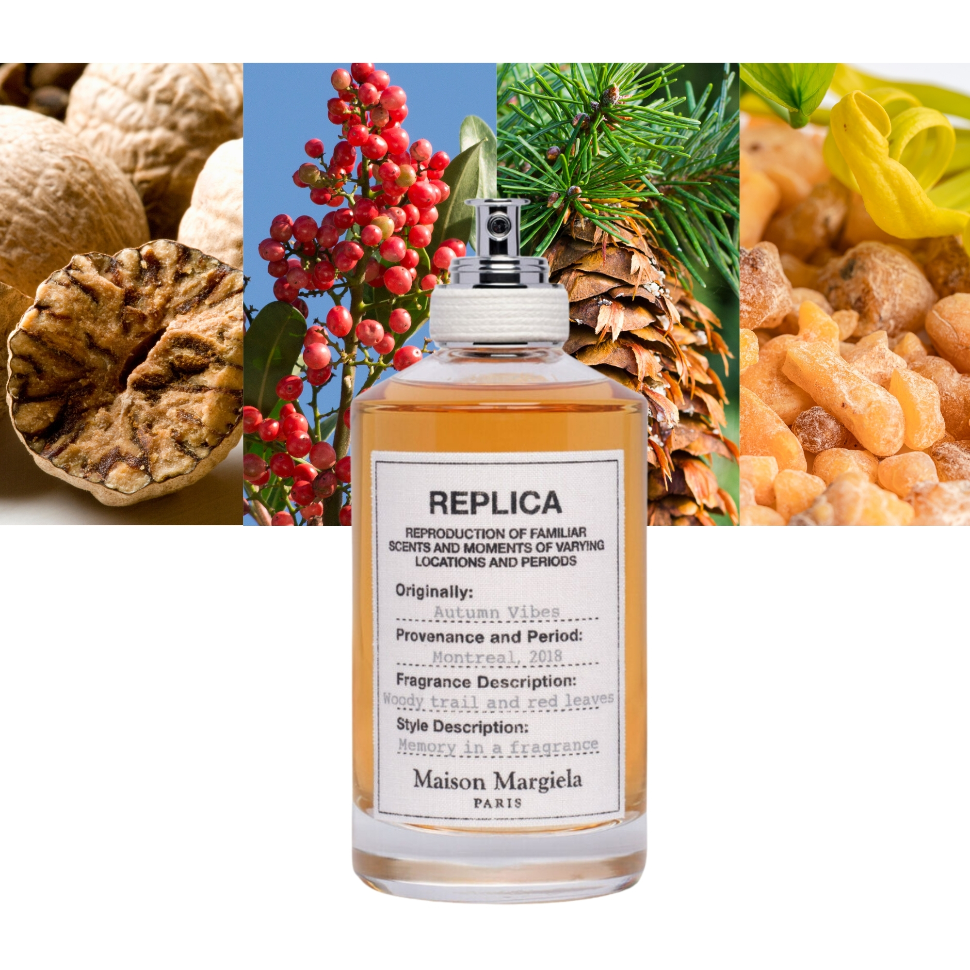 Maison Martin Margiela Replica Autumn Vibes -Layer on Autumn Vibes for a woody, spicy scent that’s inspired by the crisp fall air. This fragrance features elements of moss and cedarwood, layered over a base note of cardamom. Each bottle is blended in Grasse, France and made with natural ingredients.