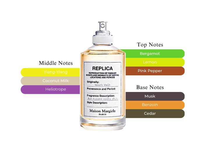 Wrap yourself in memories of sunny summer days at the beach: rays of the sun warming your skin, hot sand beneath your feet and the fresh and salty breeze of the ocean. Listen to the lapping of the waves and inhale the warm, salty breeze. Beach Walk makes you relive the vibrant and sunny of a walk along a sandy beach. This sunny and invigorating Eau de Toilette is part of the Replica collection by Maison Margiela. A fragrance that reminds you the scent of sunscreen, the salty taste of the ocean, and feel the hot sand under your feet.