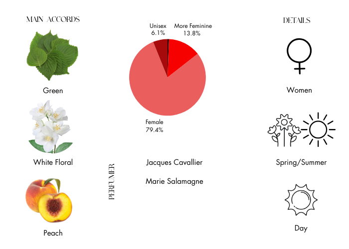 • Middle Notes: Tuberose, Jasmine Sambac, Egyptian Jasmine and Rose de Mai