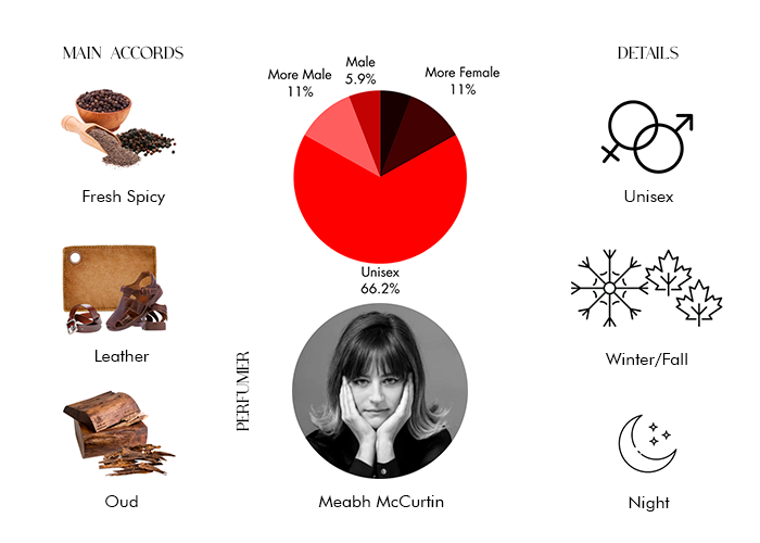 • Base Notes: Labdanum Resinoid, Oud Infusion and Leather Accord