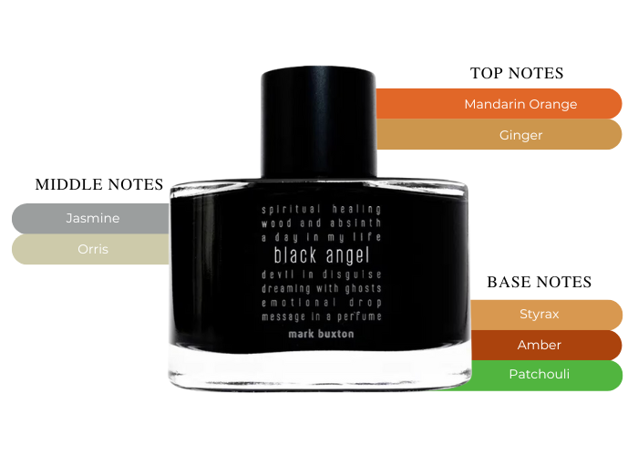 Black Angel was created by perfumer Mark Buxton, who is known for his luxe scents that are perfect for evening or day wear. Black Angel lives up to its name with a rich, spicy and mysterious scent. This oriental-fruity scent features top notes of ginger and mandarin orange; middle notes include orris root and jasmine; while base notes include amber and patchouli.