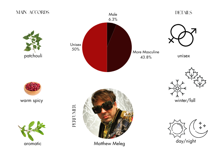 TOP NOTES WINTERGREEN (USA) PINE (CANADA) MIDDLE NOTES SWEET BASIL ORGANIC (FRANCE) PINK PEPPER ORGANIC (CHINA) CEDAR WOOD (CANADA) BASE NOTES FRACTIONATED INDONESIAN PATCHOULI HEART (INDONESIA) DRY BITTER COCOA ABSOLUTE (MEXICO)