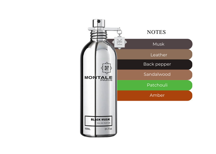 • Leather, Musk, Sandalwood, Ambergris, Patchouli, Black Pepper, Nutmeg and Teakwood