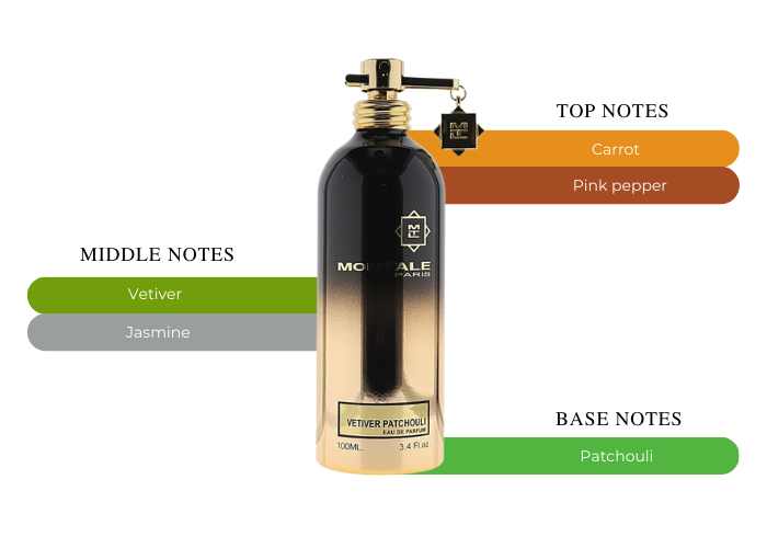 - Vetiver - Jasnime - Pink Pepper - Carrot - Patchouli