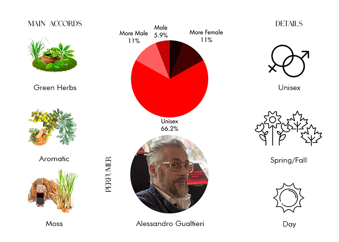 Fragarnce notes are Vetiver, Artemisia, and Green Notes.