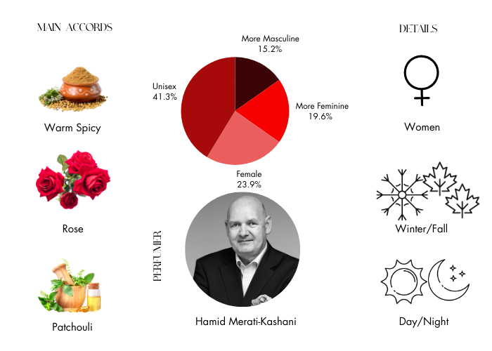 Mariya Omanluxury is a rich blend of love and glamour created by Hamid Merati-Kashani. This floral-gourmand perfume is for women to wear when they want to feel feminine, charming and sensual.